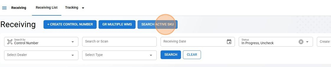 The Search Active SKU button is a specialized tool that enables users to locate control numbers associated with active items matching a specific SKU.