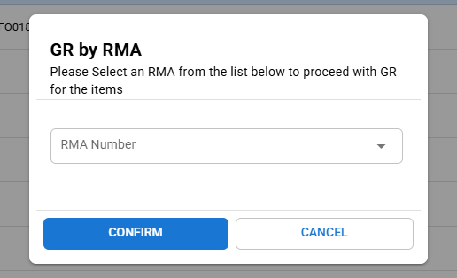 GR BY RMA: The GR by RMA function allows users to perform a Goods Receipt (GR) for multiple received items that have the selected RMA number in the system.