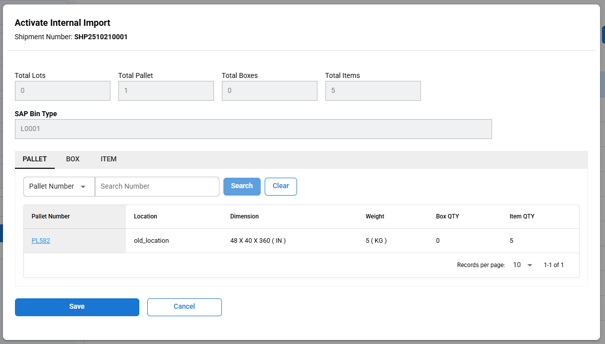 Click Save, and the items from the shipment will be transferred into the current control number.