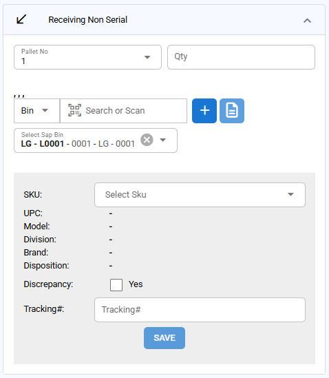 Select SAP Bin Dropdown: Choose the appropriate bin for storing the received items from the dropdown list.