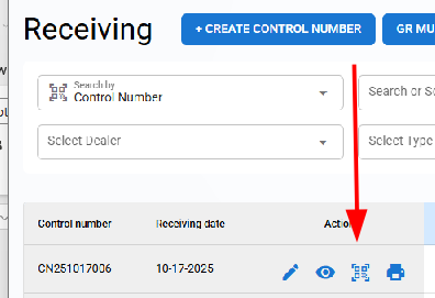 - Once a control number is marked as GR, the system will change its status to "Completed."