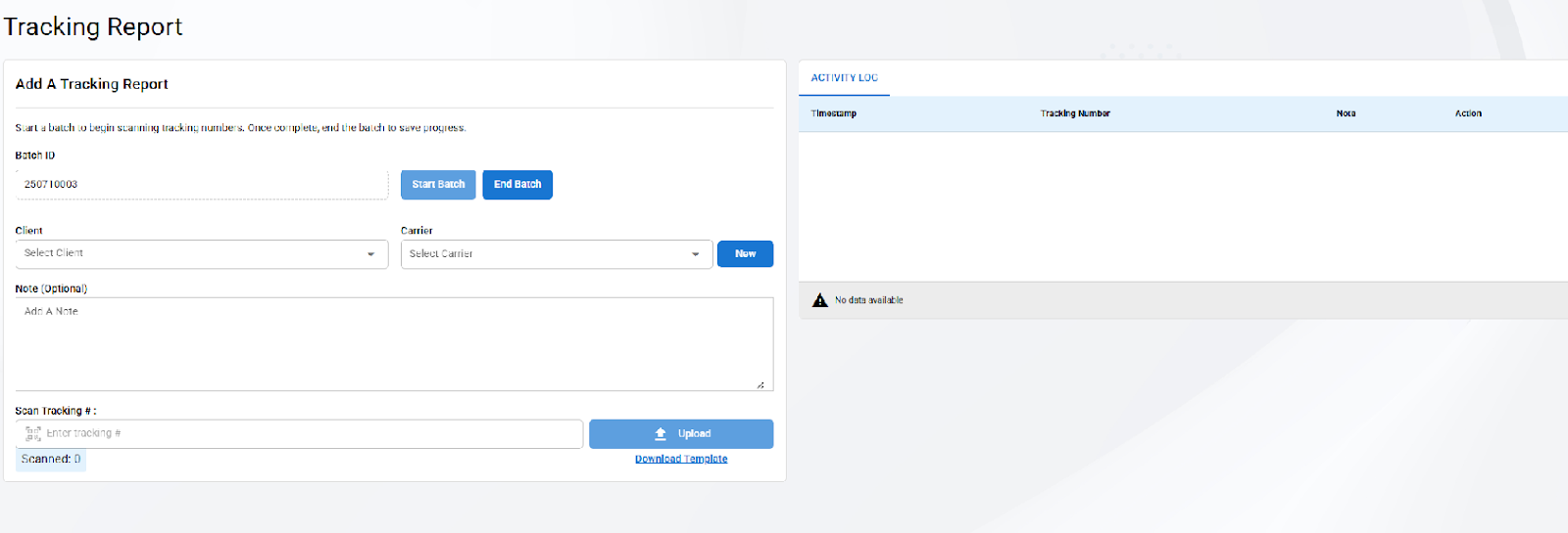 Start Batch - Creates a Batch ID for the set of items to be scanned